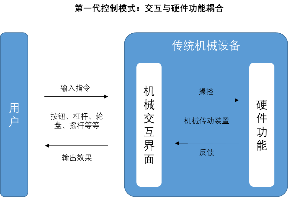 相比于对个人生产能力的提升,我相信第二条路径更加的令人兴奋,更加的具有颠覆性,那便是消灭传统的仪表盘式的交互界面。 在人机交互方面,图形操作界面的出现是一个里程碑式的事件。 在以机械设备为主导的时代,人机交互的界面是无法完全与设备的“实现”解耦的,就好像汽车中一个杠杆和齿轮组成的变速箱就只能对应一根挡杆作为输入端,而油门的输入端则是一个连接了传动机构的踏板。人在操作汽车时脑子里的意图是加速、减速、左转、右转等等,但需要进行的操作却要转化为操作多种形式不同的输入端,这便是学习汽车驾驶的困难之处。